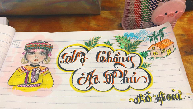 Là một người thích sáng tạo nên nữ sinh này đã nắn nót hô biến cuốn vở văn của mình thành một tác phẩm hội họa bắt mắt khiến ai xem cũng gật gù thích thú.