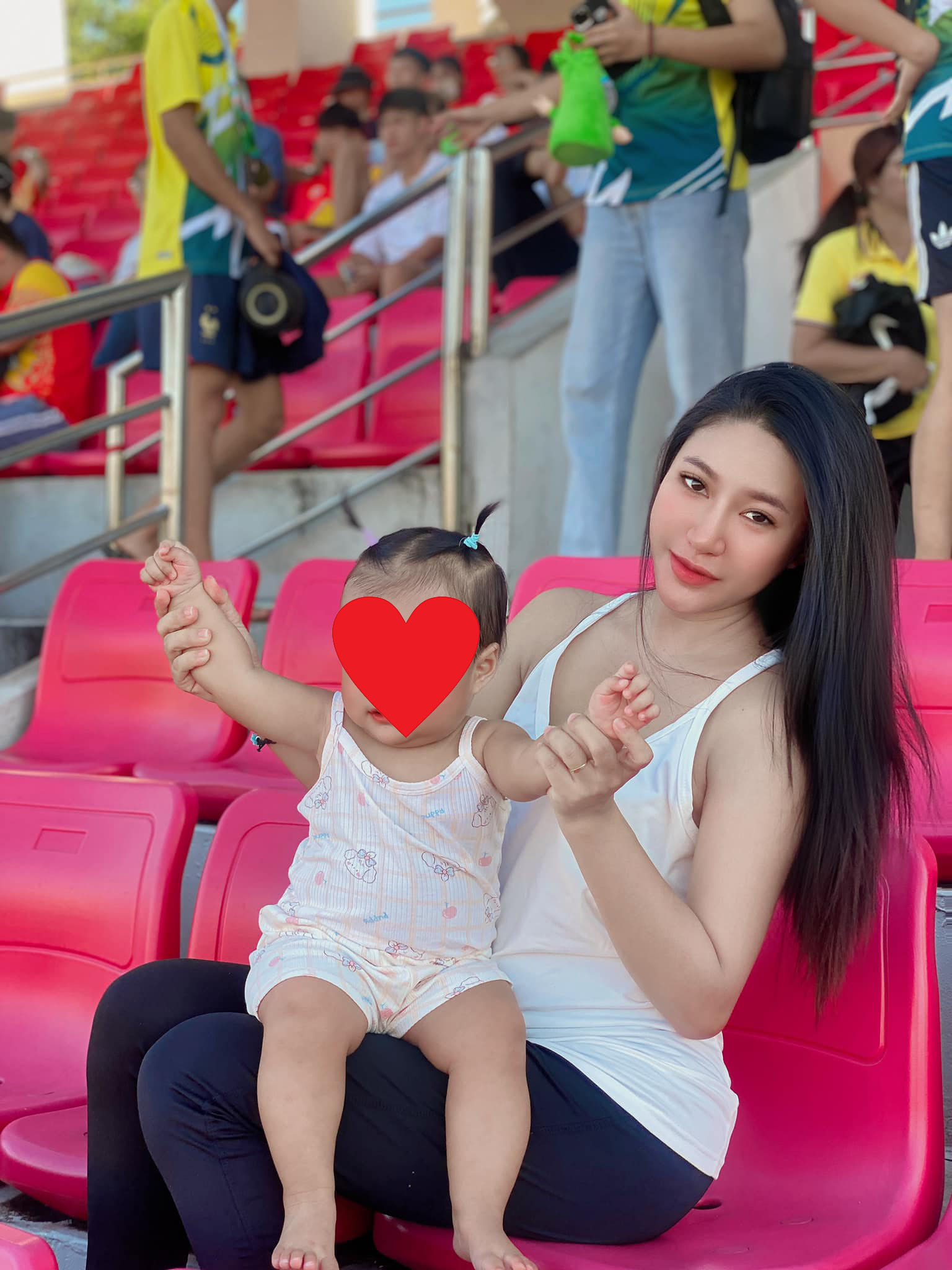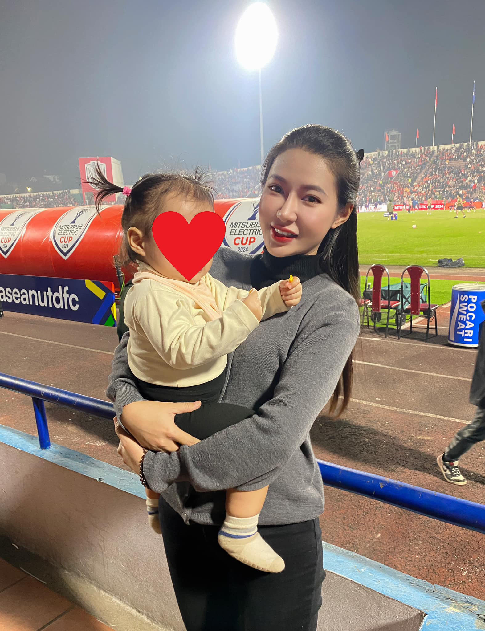 Hòa cùng không khí ăn mừng cùng đội tuyển Việt Nam, vợ của anh - Phan Diễm Tường Linh, cũng vô cùng xúc động. Tại mỗi một trận đấu, hậu phương của thủ thành Đình Triệu đều để dõi theo màn thi đấu ấn tượng của chồng cùng các đồng đội. Và sắc vóc của mẹ 1 con Tường Linh - bà xã của thủ thành Đình Triệu, luôn được săn đón khắp MXH.