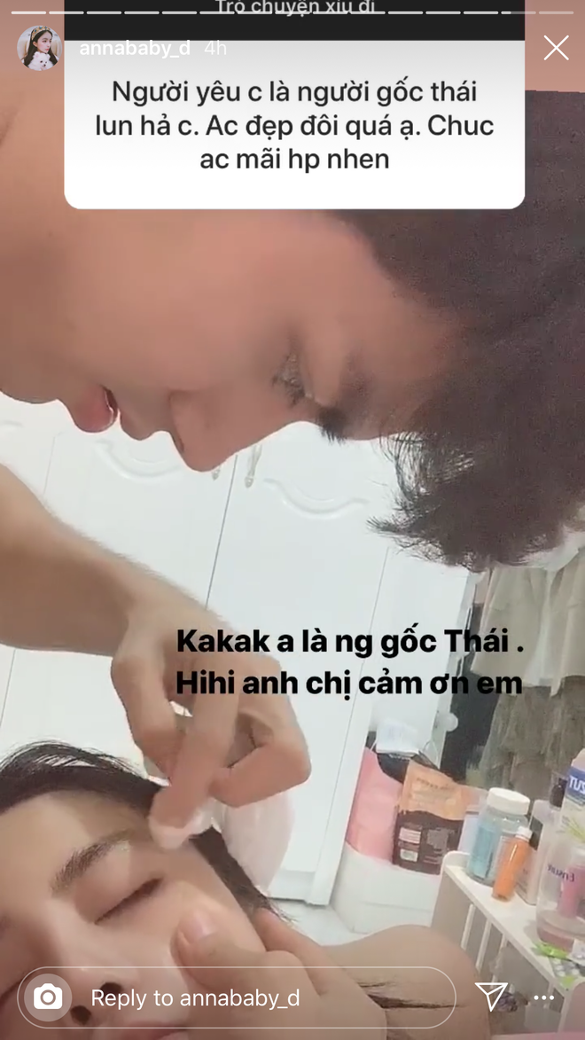 Chẳng là bạn trai vừa về Thái, không có người chăm sóc sau 1 ngày dài làm việc nên Trang Anna đã biên đôi dòng than thở. Cô nàng cũng không ngần ngại tiết lộ thêm chuyện Pre thay đồ rồi tẩy trang giúp bạn gái. Bạn trai nhà người ta là đây còn gì.