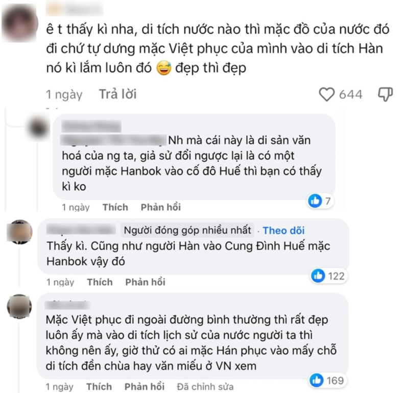 Theo đó, bộ phận cư dân mạng phản đối cho rằng việc mặc trang phục truyền thống của nước mình để đi vào di tích lịch sử hay những địa danh mang tính lịch sử và văn hoá của nước bạn là điều không nên, thậm chí là không chấp nhận được. Bởi điều này có thể khiến cho người dân địa phương cảm thấy không thực sự thoải mái. Chưa kể, tại một số nơi, điều này còn nằm trong quy định là không được phép.