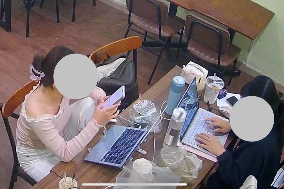 Trong suốt khoảng thời gian dài này, họ chỉ gọi một ly nước, thậm chí rời quán đi ăn trưa nhưng vẫn giữ chỗ. Khi quay lại, nhóm còn mang đồ ăn từ bên ngoài vào và nằm nghỉ ngay tại khu vực ghế của quán.