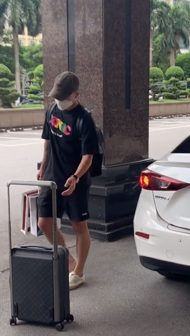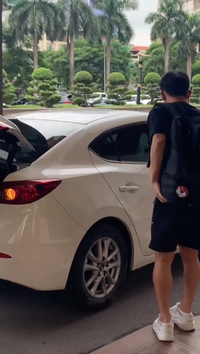 Trong đoạn clip, Nhuệ Giang dừng chiếc Mazda màu trắng ở trước sảnh khách sạn, Xuân Trường bước ra từ ghế phụ và Minh Vương ngồi ghế sau. Cả 2 cầu thủ nhanh chóng lấy đồ đạc từ trên xe và đi vào cùng mọi người. Trong khi đó, từ đầu đến cuối đoạn clip, Nhuệ Giang ngồi im trên xe dùng điện thoại, không xuống tạm biệt chồng hay có động thái nào khác.