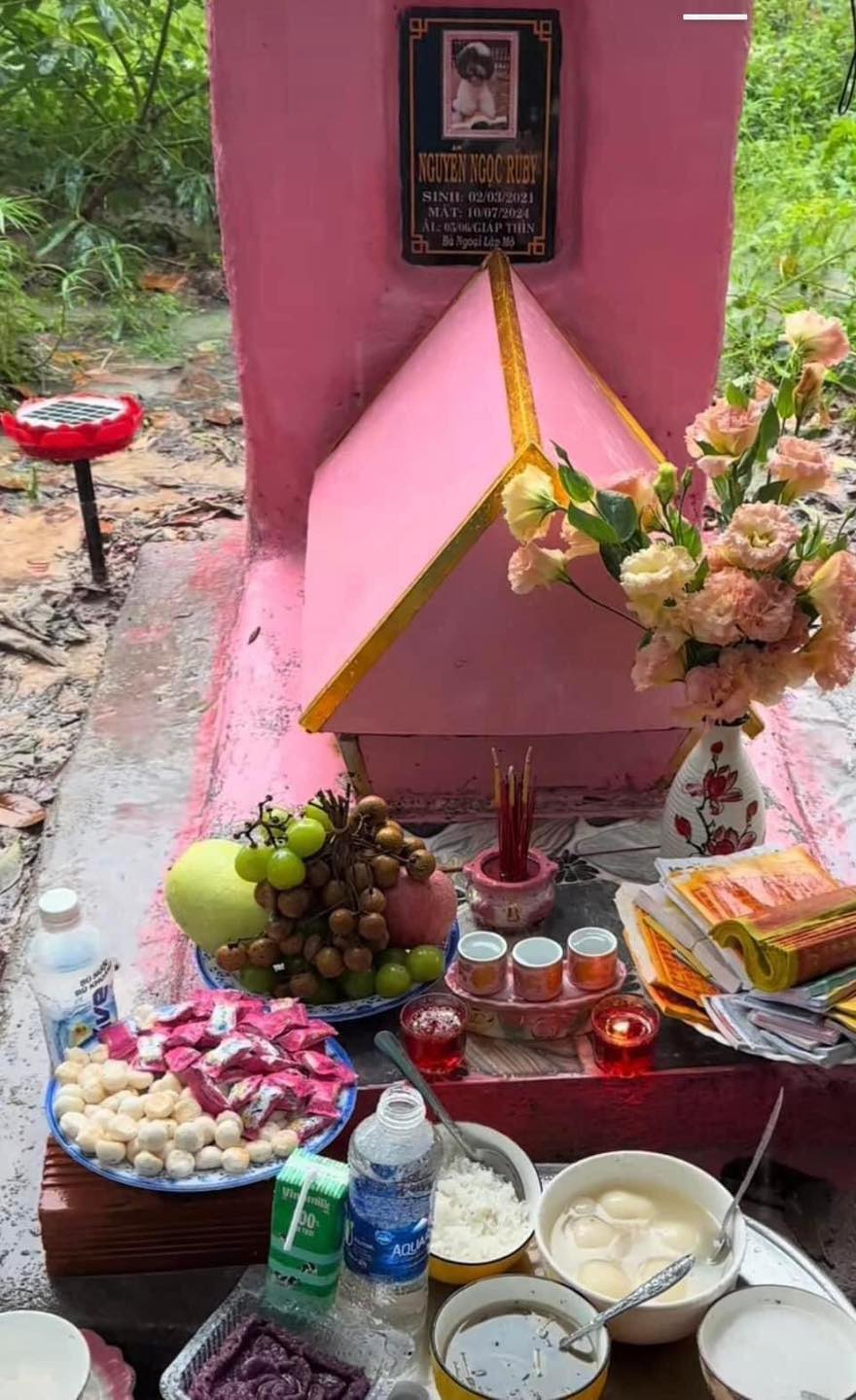 Mới đây, trên mạng xã hội không ngừng chia sẻ hình ảnh ngôi mộ của một chú cún và nhận về không ít luồng ý kiến khác nhau. Từ những hình ảnh, có thể thấy chú chó đã mất vào tháng 7 năm nay. Ngôi mộ được xây khá vững chãi với sơn màu hồng và có đầy đủ cả di ảnh ghi tên họ cùng ngày sinh - ngày mất của chú chó.