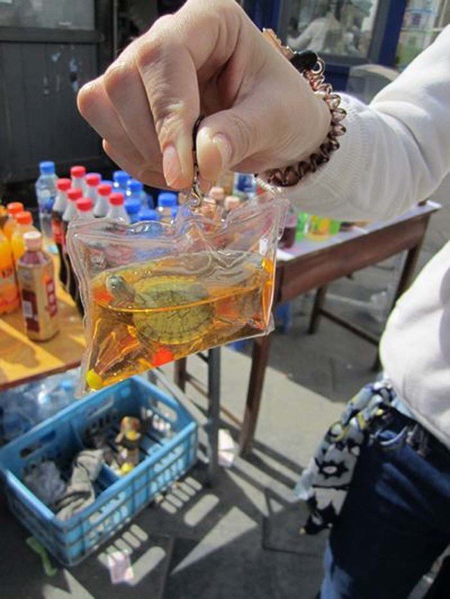 Đã có nhiều hiệp hội lên án, đồng thời lên tiếng kiến nghị chính phủ Trung Quốc ngăn cấm hành vi sản xuất thứ đồ lưu niệm phản cảm này. Khi bán hàng, người bán thường quảng cáo những con vật này có thể sống tốt trong túi nilon bị ép kín kia khoảng 3 tháng. Nhưng với việc phải sống trong "nhà tù" nhỏ xíu, cùng với dung dịch không lành mạnh bên trong và bị rung lắc liên tục những con vật này có thể chết ngay sau đó vài ngày.
