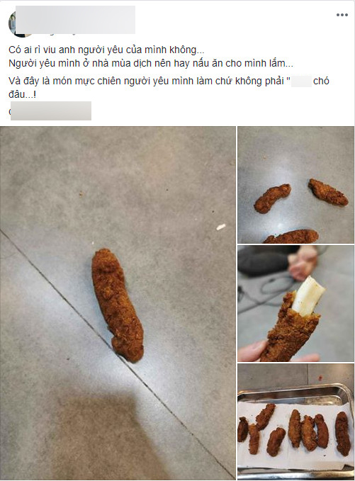 Mới đây một cô gái có tên là A.S đã chia sẻ hình ảnh về món mực chiên xù đích thân người yêu cô xắn tay vào bếp làm khiến cộng đồng mạng cười sặc sụa. "Anh người yêu ở nhà mùa dịch nên hay nấu ăn cho mình lắm. Và đây là món mực chiên của người yêu mình chứ không phải cái thứ các bạn nghĩ trong đầu đâu".
