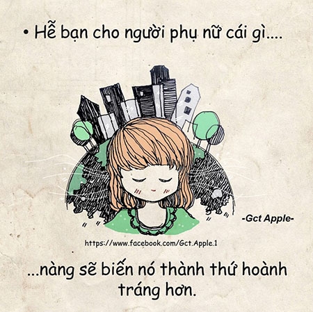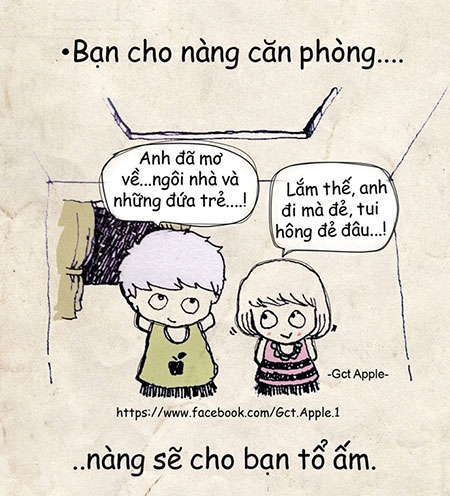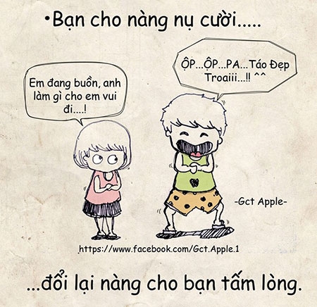 | Vũ Hữu Nhân (còn có nickname là Apple) vừa đăng tải loạt tranh vẽ Cho đi và nhận được gì từ người con gái ta yêu?. Trước đó, chàng trai khiến giới trẻ thích thú qua các bộ tranh "Bí kíp cưa gái", "Tuổi thơ tôi". |