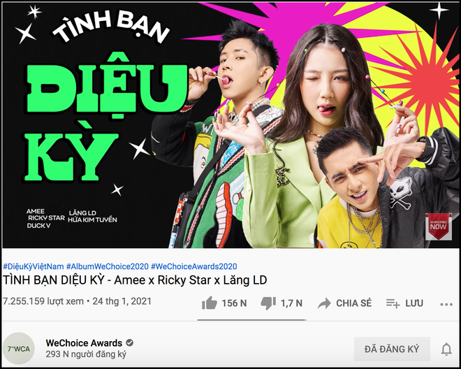 - YouTube: Bài hát Tình Bạn Diệu Kỳ đã có hơn 7,2 triệu views cùng với hàng nghìn bình luận tích cực.