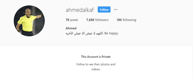 Tuy nhiên, ông Al-kaf đã có nước đi khôn ngoan để "né" làn sóng tấn công này. Trang Instagram cá nhân của vị trọng tài 37 tuổi đã được chuyển sang chế độ riêng tư tự khi nào. Ngoài ra, ông này cũng không dùng Facebook nên vì thế, người Thái chẳng có cách nào làm phiền được ông vua áo đen người Oman.