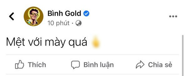 Sau khi sự việc gây xôn xao trên mạng xã hội, Bình Gold cũng có động thái được cho là ngầm ám chỉ ViruSs. Bình Gold viết vỏn vẹn trên trang cá nhân: "Mệt với mày quá" cùng biểu tượng "ngón tay thối".