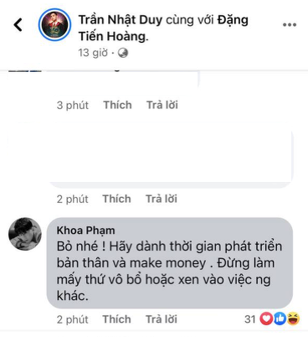 Theo đó, ngay bên dưới bài đăng của Duy Andy, Karik cho hay: "Bỏ nhé! Hãy dành thời gian phát triển bản thân và make money (Tạm dịch: Kiến tiền - PV). Đừng làm mấy thứ vô bổ hoặc xen vào việc người khác". Dòng bình luận của Karik dù khá ngắn gọn nhưng cũng cho thấy nam rapper kịch liệt phản đối học trò của mình "bắt tay" ViruSs để diss Bình Gold nếu điều này là sự thật.