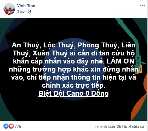 "Vinh huy động lực lượng địa phương, nhiều thành phần khác nhau, những người có sức khoẻ, có khả năng sông nước, bơi lội, cứu hộ, sở hữu hoặc biết sử dụng ghe thuyền, cano, mô-tô nước, xe bán tải, y tế, kỹ thuật máy...", anh Vinh cho biết thêm thông tin về "Biệt đội cano 0 đồng" mới này.