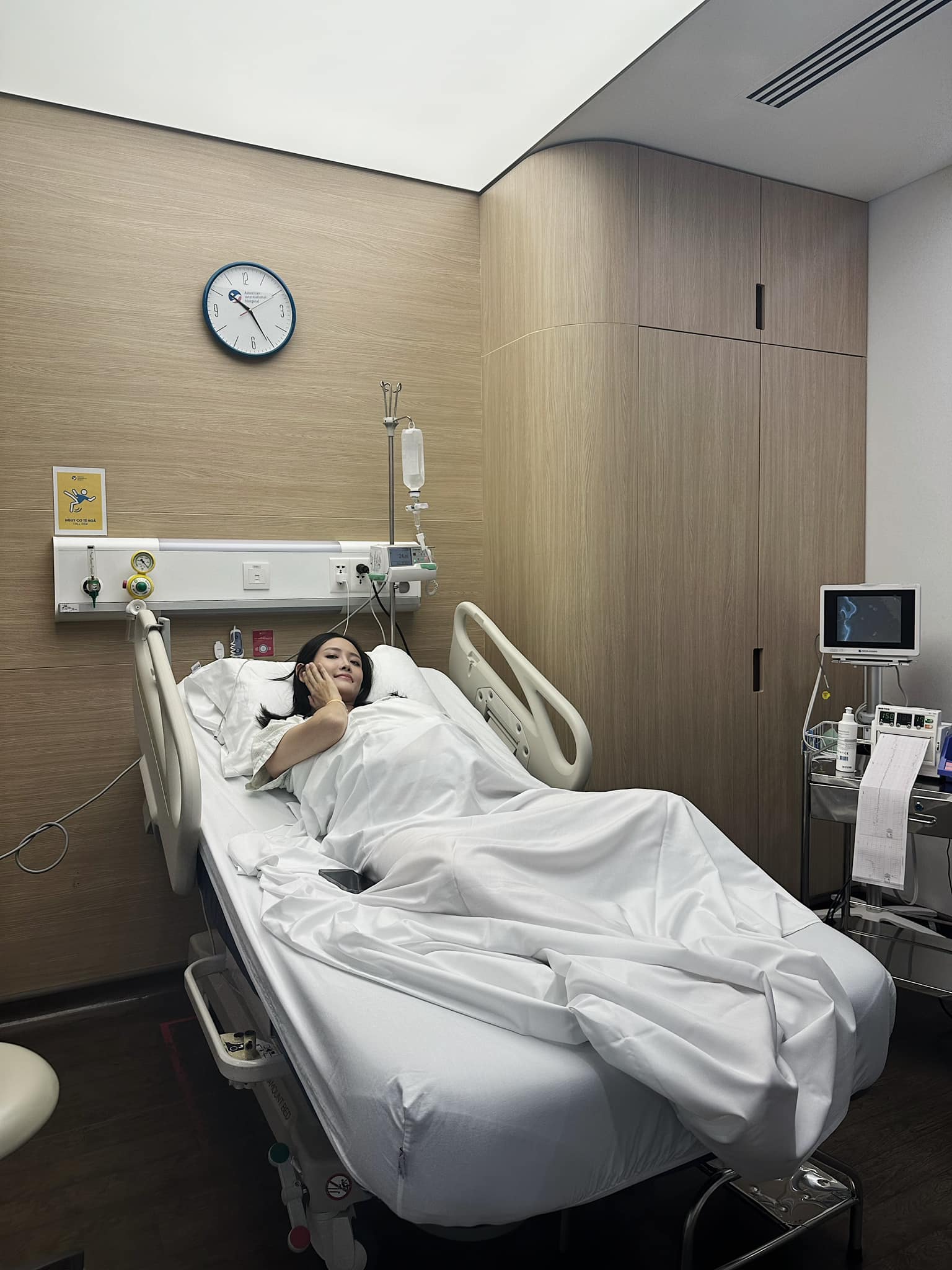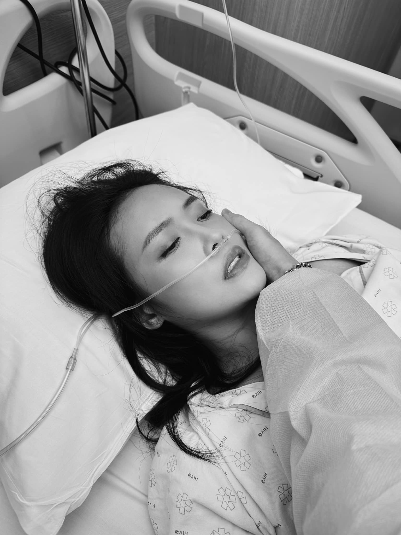 Những hình ảnh được Phí Ngọc Hưng chia sẻ là sự mệt mỏi của Trương Mỹ Nhân sau khi "vượt cạn". Đặc biệt, trong lúc vẫn còn đang nửa tỉnh nửa mê, cô nàng vẫn nắm chặt tay chồng đầy tình cảm.