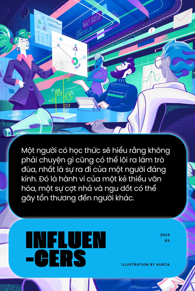 Với hệ quy chiếu đấy, tôi nhìn thấy đằng sau vẻ đẹp lấp lánh của một vài hotgirl, đằng sau sự hoạt ngôn/ thú vị/ hài hước của một vài anh Influencer - lại hóa ra là những kẻ thờ ơ, cợt nhả, vô tâm và thiếu văn hóa. Nguy hiểm hơn, với lượt view, lượt like và comment thuộc hàng khủng - họ đã tưởng thế là hay và cho rằng người khác chỉ đang khắt khe với mình mà thôi.