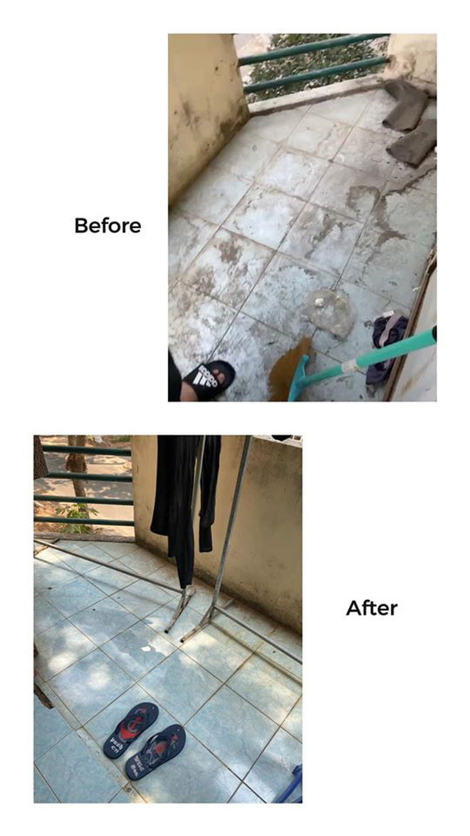 Khi mới vào cách ly, Lâm Thảo cũng gặp đôi chút bỡ ngỡ nhưng nhanh chóng thích ứng được: "Mình thấy việc dọn dẹp và giúp đỡ các anh dân quân là chuyện đương nhiên vì bọn mình biết các anh chỉ có đúng 2 ngày để dọn rửa sạch sẽ khu này nên việc cách ly ban đầu bụi bặm là điều dễ hiểu".