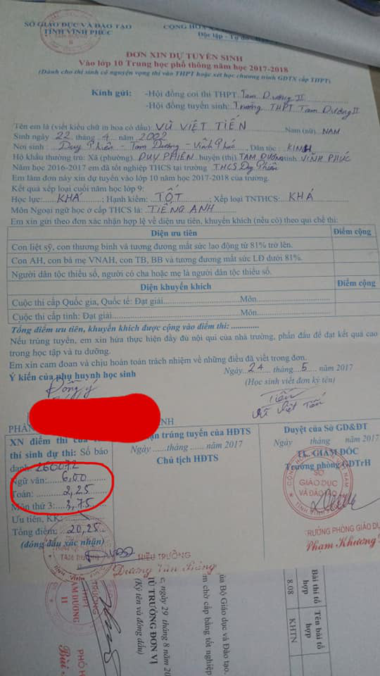Theo đó, những năm học cấp 2, môn sở đoản của cậu bạn luôn nằm ở những môn thiên về những con số và công thức, trong đó có Toán học. Nhưng, như chúng ta đã biết, trong gần như tất cả các khối ngành thi THPT đều có môn Toán và do đó, cậu bạn này đã không đạt được kết quả khả quan cho lắm, bạn chỉ nhận vỏn vẹn 2,25 điểm môn Toán, thấp hơn so với 2 môn còn lại trong kỳ thi.