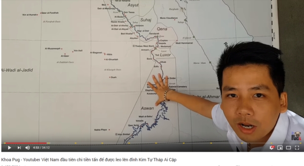 Kênh Youtube của Khoa Pug viết: "Hôm nay mình sẽ trở thành người Việt Nam đầu tiên review Kim Tự Tháp - Một trong 7 kì quan cổ đại của thế giới còn tồn tại đến bây giờ. Khoa Pug - Youtuber Việt Nam đầu tiên chi tiền tấn để được leo lên đỉnh Kim Tự Tháp Ai Cập".
