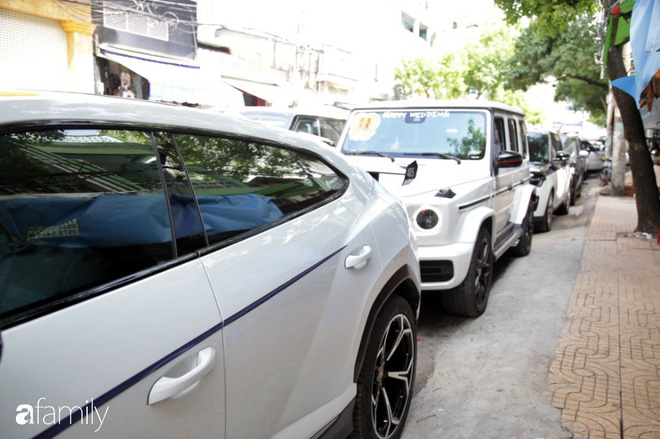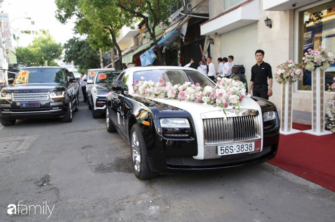 Ngay từ sáng khi lễ rước dâu diễn, đại gia Minh Nhựa đã cho dàn siêu xe 15 chiếc với tổng trị giá trên dưới 100 tỷ đồng hộ tống con gái về nhà chồng. Dàn xe gồm 1 chiếc Lamborghini Urus, 1 chiếc Mercedes-AMG G63 Edition One, 1 chiếc Bentley Bentayga, 1 chiếc BMW 7-Series và 11 chiếc Land Rover...