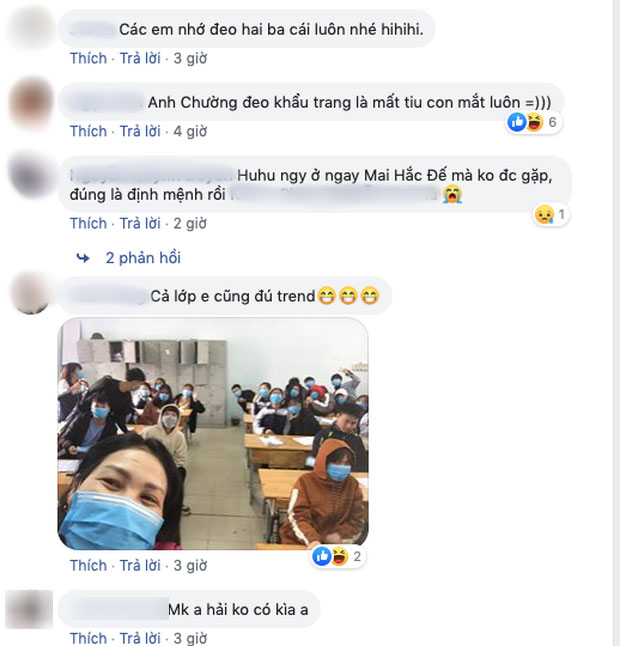 Trên trang cá nhân, "hoàng tử Ả rập" Đức Huy vừa khoe ảnh tụ tập với hội anh em thân thiết Lương Xuân Trường, Quế Ngọc Hải và Phí Minh Long sau khi kết thúc kỳ nghỉ Tết vào tối mùng 6 âm lịch. Điều đáng nói, thay vì tạo dáng như bình thường, các chàng trai lại chụp ảnh với chiếc khẩu trang còn đeo nguyên trên mặt ngay trước bàn ăn. Đức Huy viết: "Hãy học cách phòng tránh mọi lúc mọi nơi! Kể cả khi chúng ta đang ăn!".