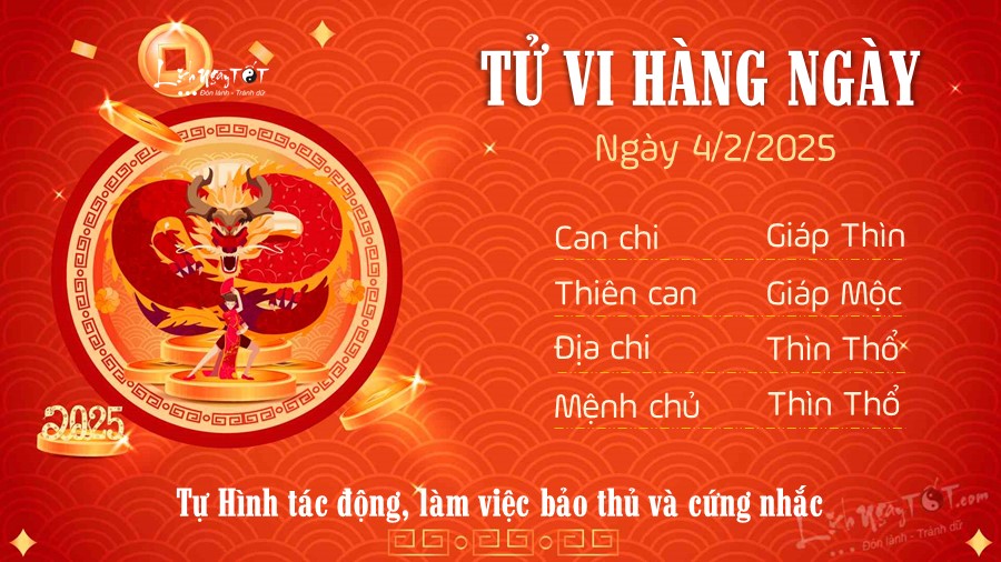 Tử vi ngày 04/02/2025 tức ngày 07/01 theo lịch âm năm Ất Tỵ của 12 con giáp: