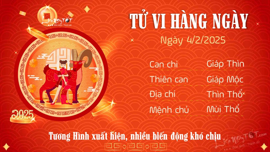 04/02/2025 13:00Tử vi 12 con giáp hôm nay - thứ 3 ngày 04/02/2025: Mão chán nản, Dậu thăng tiến
