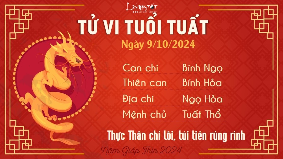 Thực Thần chỉ lối, phương diện tài lộc của người tuổi Tuất rực sáng trong thời điểm này. Người làm nghề tự do có thể kí kết được hợp đồng béo bở. Bạn cũng nhận được thêm tiền hoa hồng vì đã hoàn thành tốt công việc trước đó.