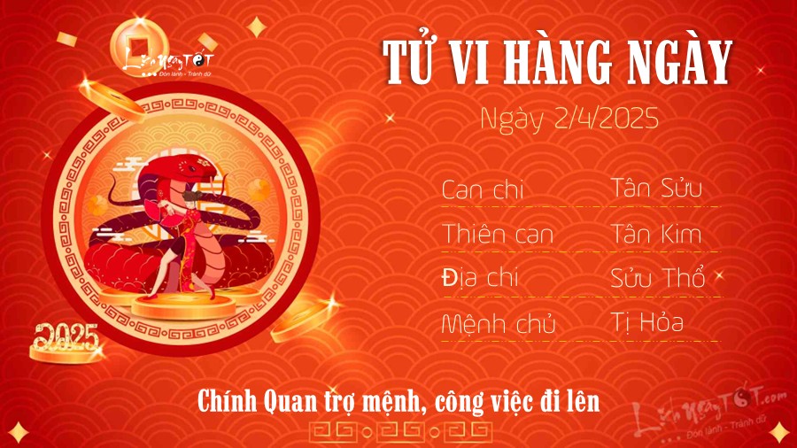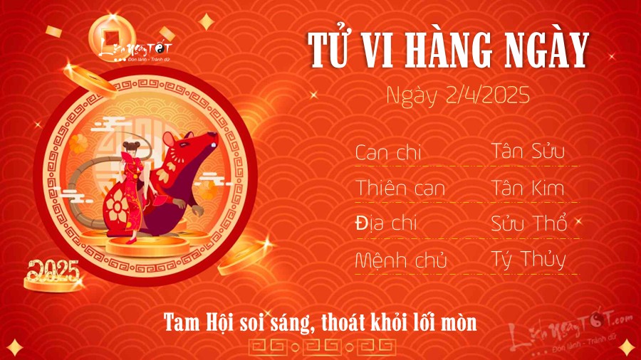 Tử vi ngày 02/04/2025 tức ngày 05/03 theo lịch âm năm Ất Tỵ của 12 con giáp: