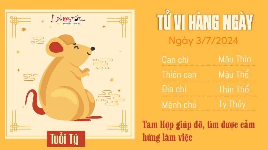 Tử vi hôm nay thấy rằng, Tam Hợp nâng đỡ, người tuổi Tý tìm được cảm hứng trong công việc, vì vậy mà càng là việc khó, bạn lại càng hăng hái hơn bởi bạn biết đây là cơ hội để mình rèn luyện và khẳng định bản lĩnh.