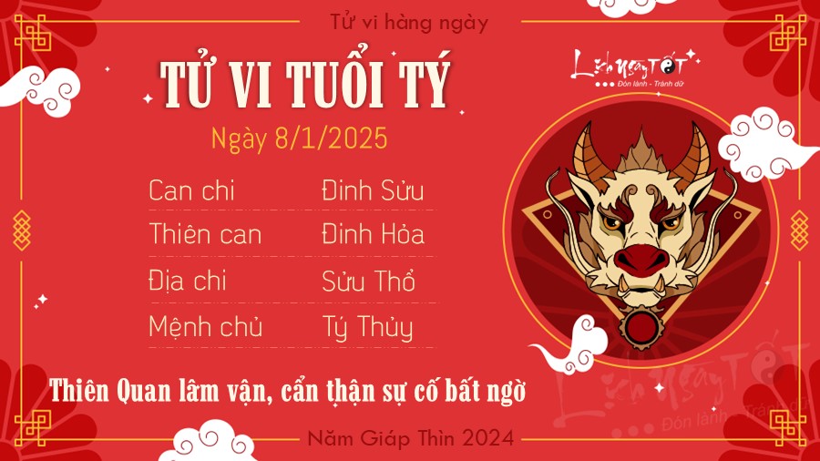 08/01/2025 13:00Tử vi 12 con giáp hôm nay - thứ 4 ngày 08/01/2025: Sửu lộc lá, Thìn bị phá