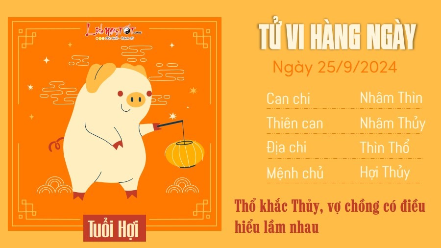 Căn cứ tử vi hàng ngày 25/9/2024 của 12 con giáp, Thổ khắc Thủy, người tuổi Hợi và nửa kia có thể hiểu lầm nhau trong một vấn đề nào đó. Thay vì nóng nảy, đổ lỗi cho nhau thì hai người nên bình tĩnh trao đổi để có thể tháo gỡ.