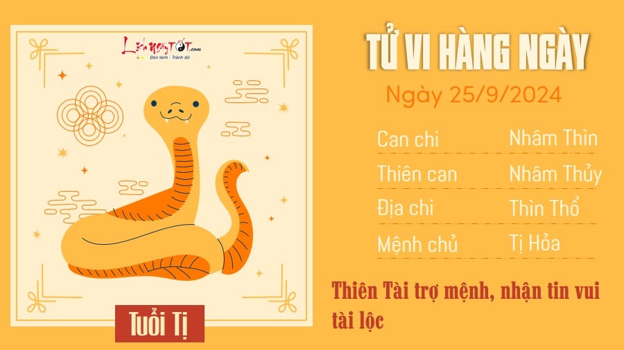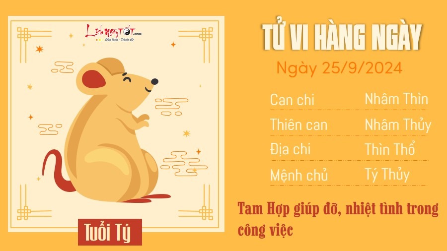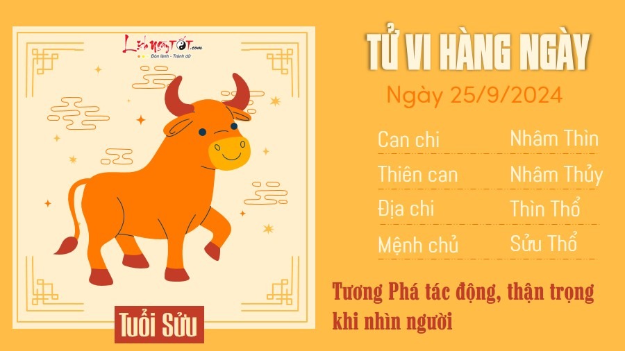 25/09/2024 13:00Tử vi 12 con giáp hôm nay - thứ 4 ngày 25/09/2024: Sửu thận trọng, Tị nhiều tài lộc