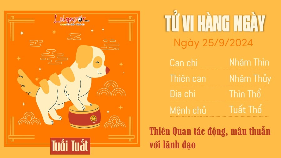 Trong ngày hôm nay, Thiên Quan tác động, người tuổi Tuất dễ mâu thuẫn với người làm lãnh đạo trong ngày hôm nay. Đối phương đưa ra những yêu cầu khiến bạn thấy bất hợp lý và bạn sẵn sàng đứng lên tranh luận.
