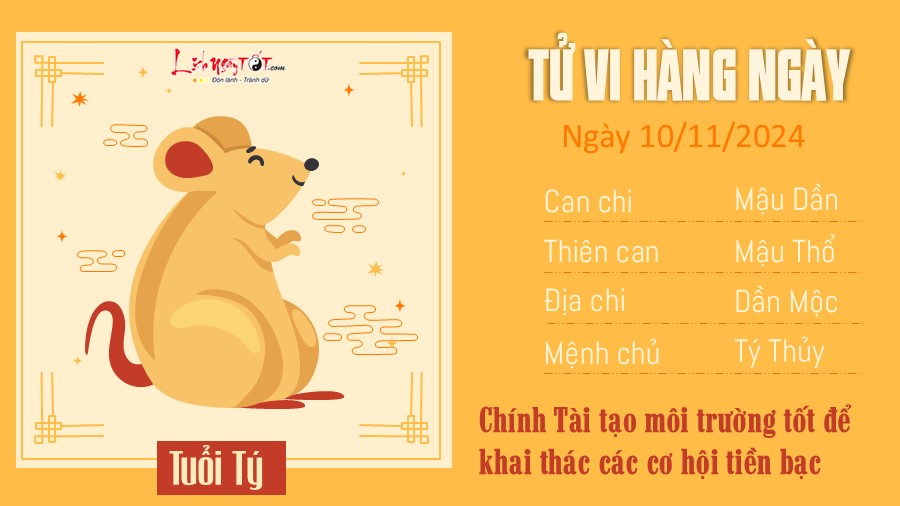 1. Tử vi ngày 10/11/2024 tuổi Tý
