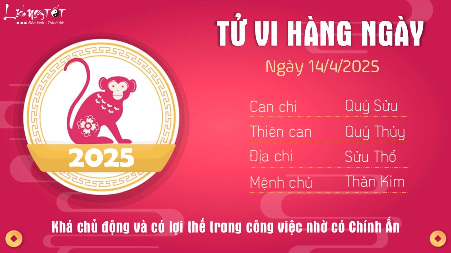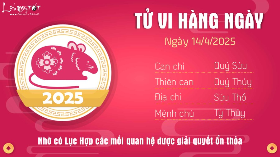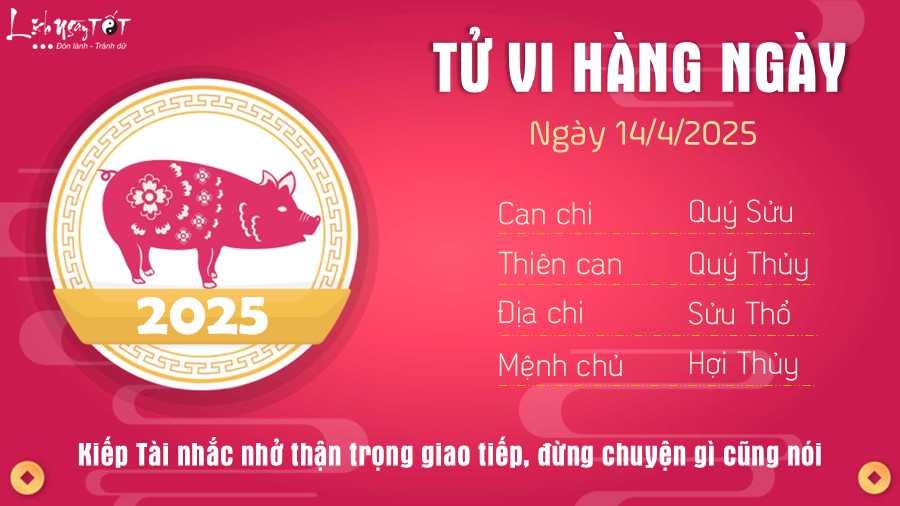 Tử vi hàng ngày 14/4/2025 của 12 con giáp, hôm nay có Thiên Quan dự báo khó khăn đang gia tăng trong cuộc sống đòi hỏi con giáp tuổi Sửu nên có biện pháp phòng ngừa từ sớm. Tất nhiên các vấn đề bạn gây ra rồi thì khó tránh khỏi nhưng hạn chế được phần nào sự nghiêm trọng thì càng tốt.