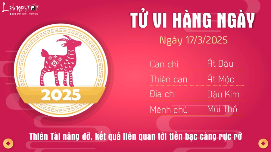 Chi tiết tử vi hàng ngày 17/3/2025 của 12 con giáp