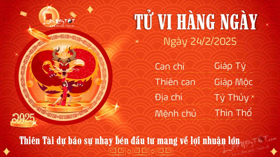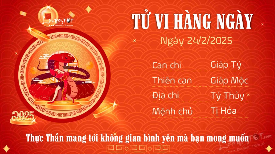 Chi tiết tử vi hàng ngày 24/2/2025 của 12 con giáp