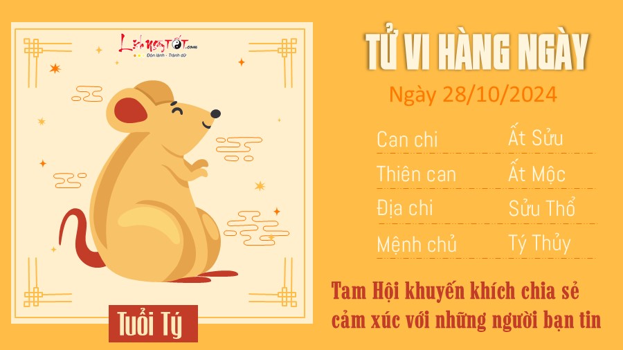 1. Tử vi ngày 28/10/2024 tuổi Tý