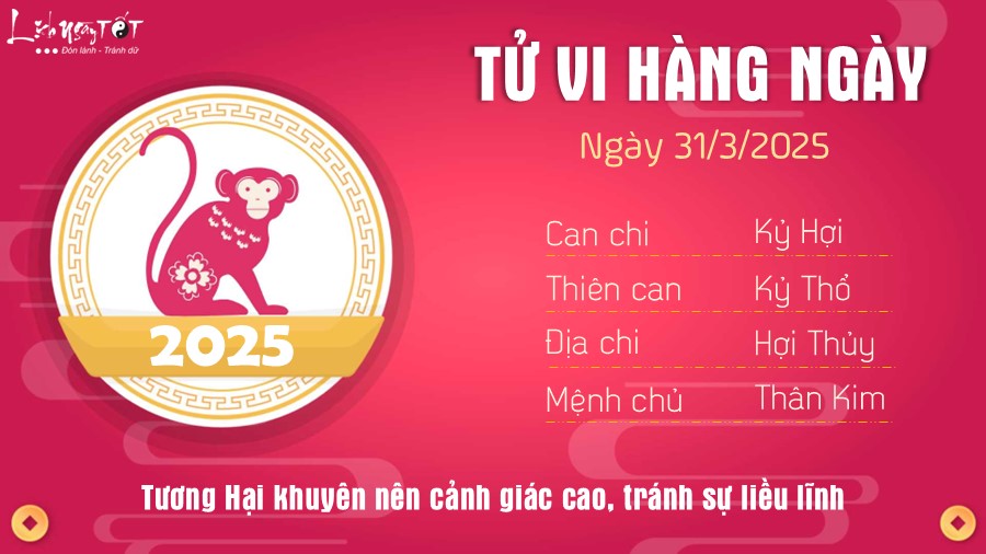 12. Tử vi ngày 31/3/2025 tuổi Hợi