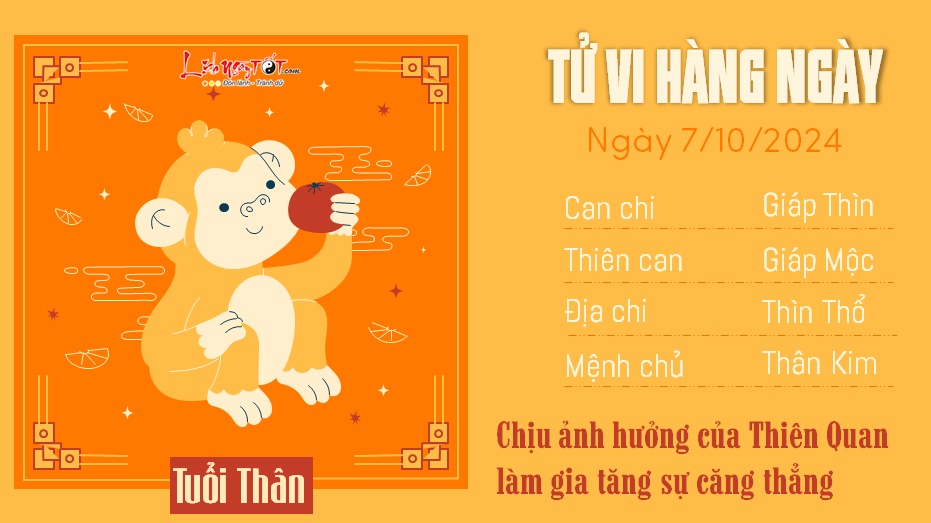 9. Tử vi ngày 7/10/2024 tuổi Thân