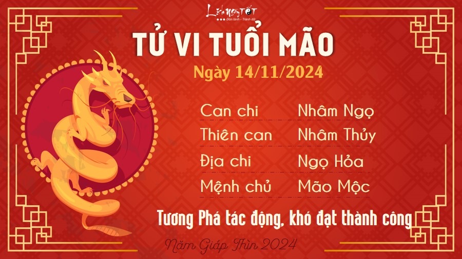 Tử vi hàng ngày 14/11/2024 của 12 con giáp thấy, Thiên Quan cản trở, con đường sự nghiệp của người tuổi Thìn phải trải qua nhiều khó khăn trong hôm nay. Bạn cần cẩn thận khi giao tiếp với người làm lãnh đạo.