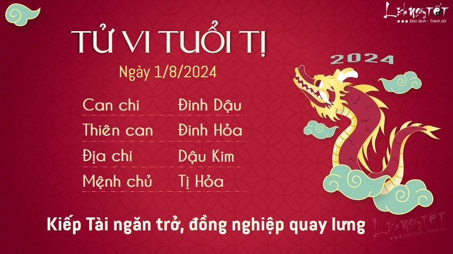 Kiếp Tài ngăn trở, có thể công việc của người tuổi Tị sẽ không được suôn sẻ như ý muốn trong thời điểm này. Con giáp này bị đồng nghiệp quay lưng, cố tình gây khó dễ nên việc gì cũng phải tự lực cánh sinh.