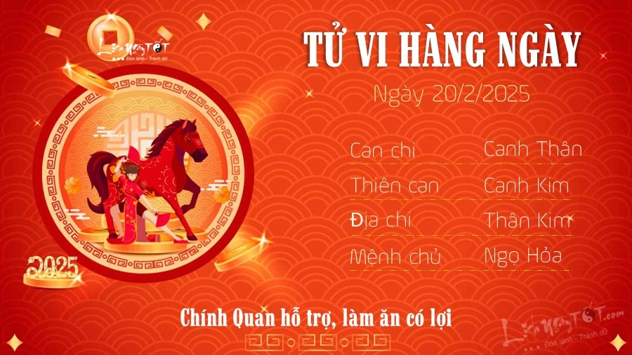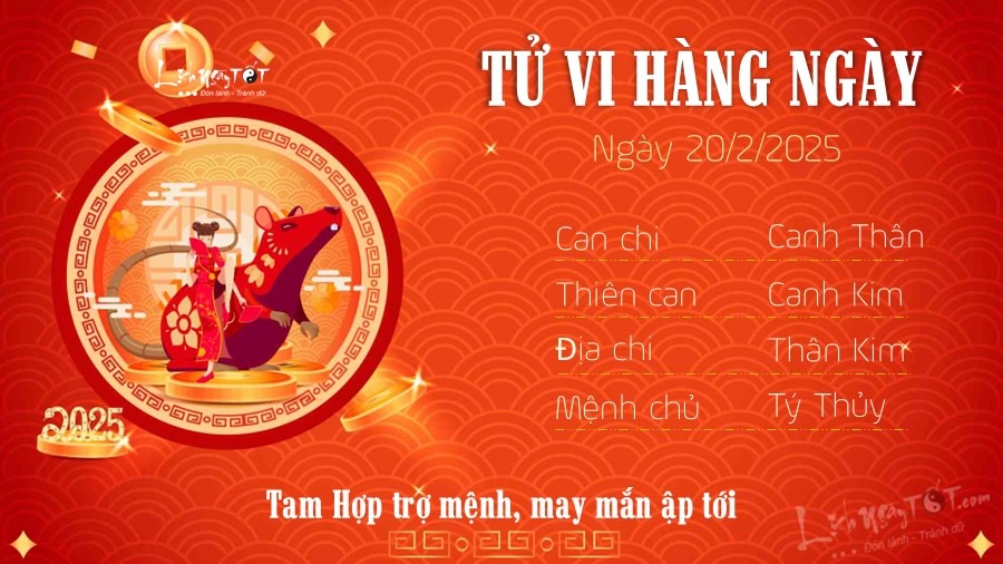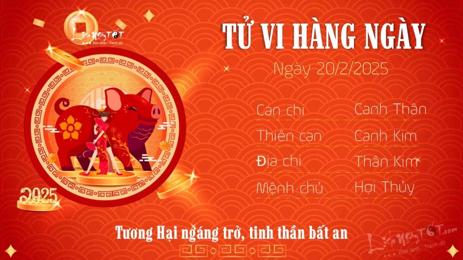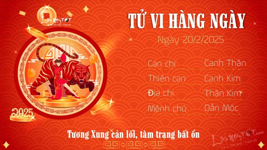20/02/2025 13:00Tử vi thứ 5 ngày 20/2/2025 của 12 con giáp: Dần khó chịu, Tý gặp hung hóa cát