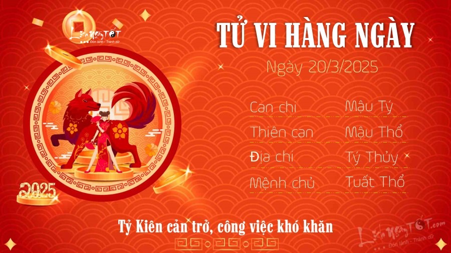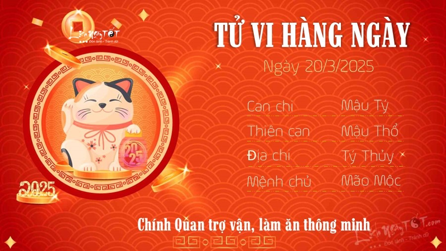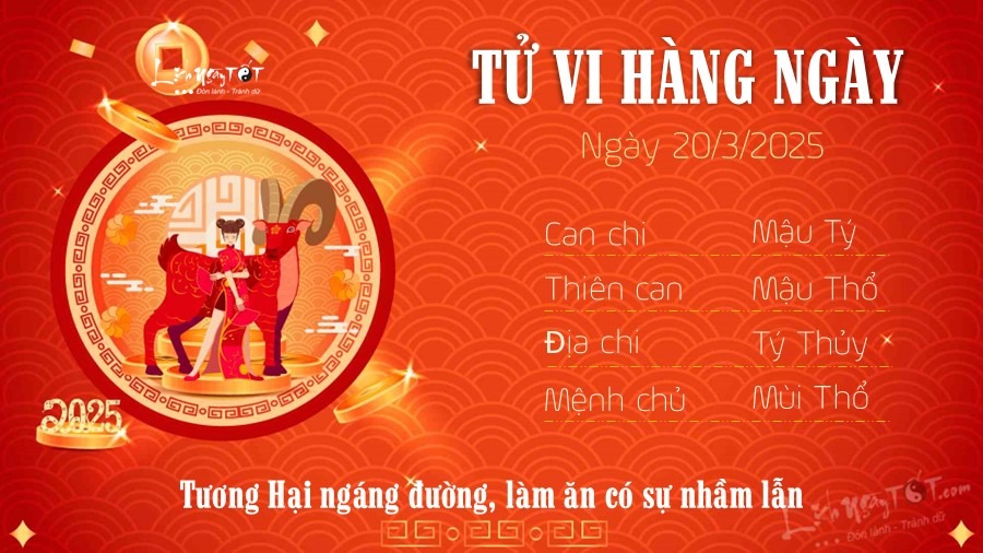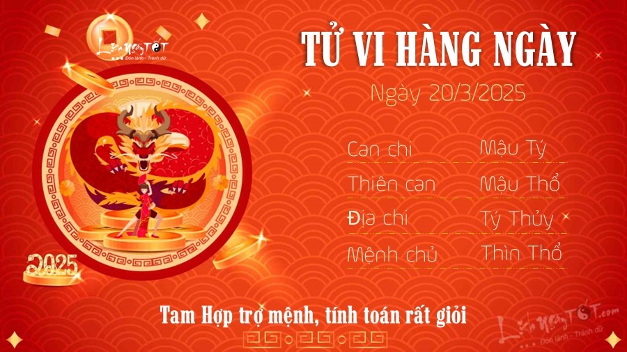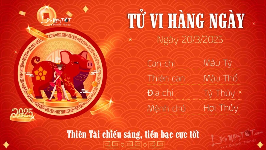 Tiếp nối tử vi ngày 19/3/2025, nay Chính tài chiếu mệnh, tin vui lớn cho Tý trong ngày này là bạn không phải lo lắng bất cứ việc gì liên quan đến tiền bạc. Bên cạnh đó con giáp này còn có cơ may gặt hái mạnh tay trong công việc hiện tại, nguồn thu từ công việc giúp bạn nghỉ ngơi thoải mái, may mắn vô cùng tận.