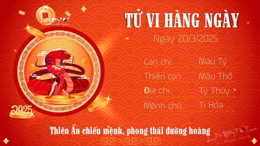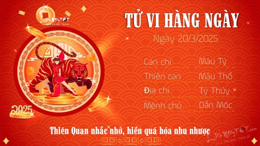 20/03/2025 13:00Tử vi thứ 5 ngày 20/3/2025 của 12 con giáp: Tý thông minh, Hợi sắp có tiền