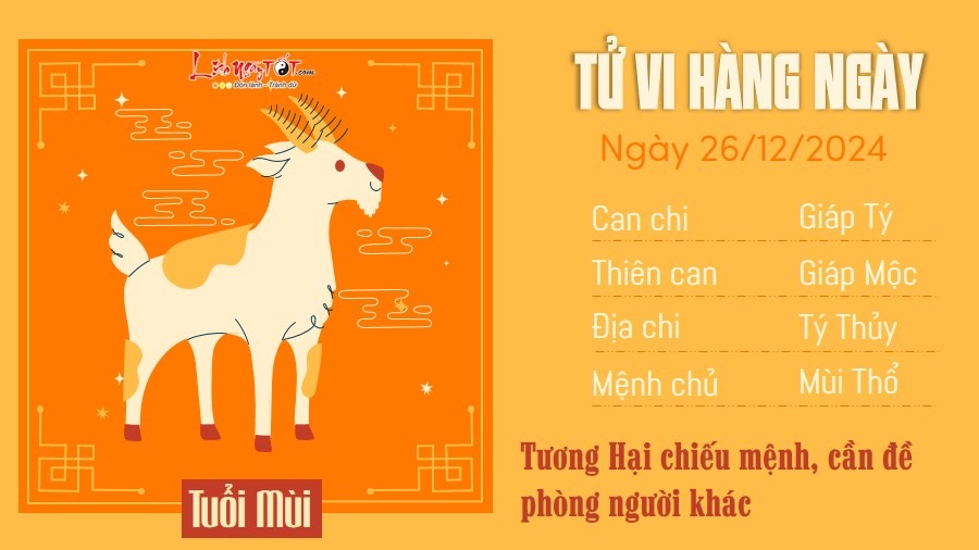 26/12/2024 13:00Tử vi thứ 5 ngày 26/12/2024 của 12 con giáp: Dần tự tin, Thìn cởi mở