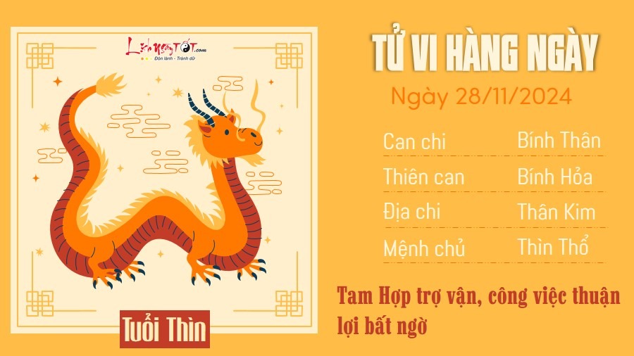 28/11/2024 13:00Tử vi thứ 5 ngày 28/11/2024 của 12 con giáp: Dần thị phi, Thìn thuận lợi