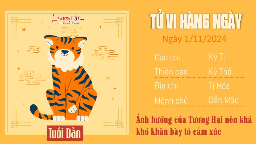 Ảnh hưởng của Tương Hại nên con giáp tuổi Dần khá khó khăn trong việc bày tỏ cảm xúc với một nửa của mình. Có thể bạn cho rằng thời điểm này không phù hợp và đành giữ im lặng.