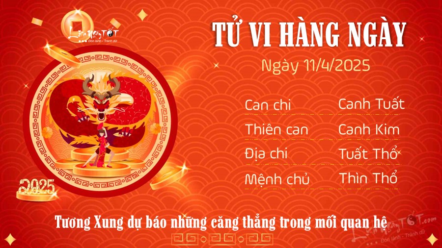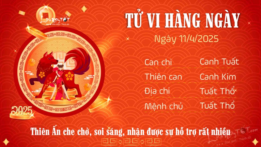 11/04/2025 13:00Tử vi thứ 6 ngày 11/4/2025 của 12 con giáp: Hợi thu hút, Mão dư dả
