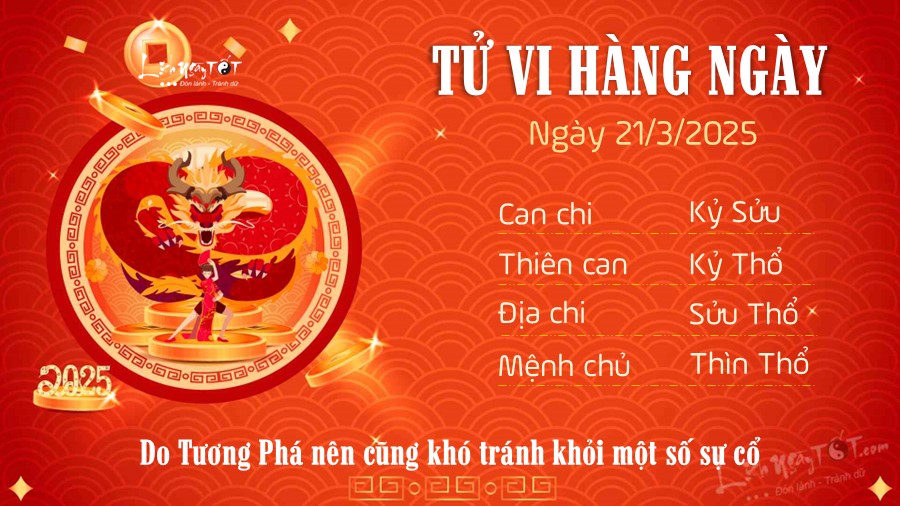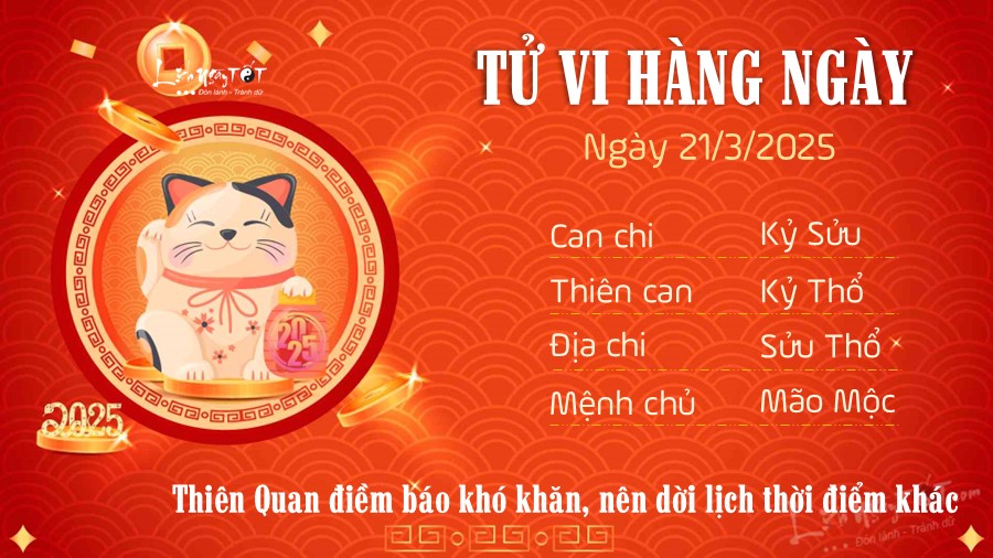 Hơn nữa, hôm nay là ngày 21/3/2025 là ngày Tam nương sát. Ngày này theo quan niệm dân gian là ngày xấu, do đó bản mệnh nên tránh làm những việc quan trọng, nhất là những việc liên quan tới khai trương, xuất hành, cưới hỏi, sửa chữa hay cất nhà...