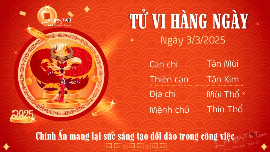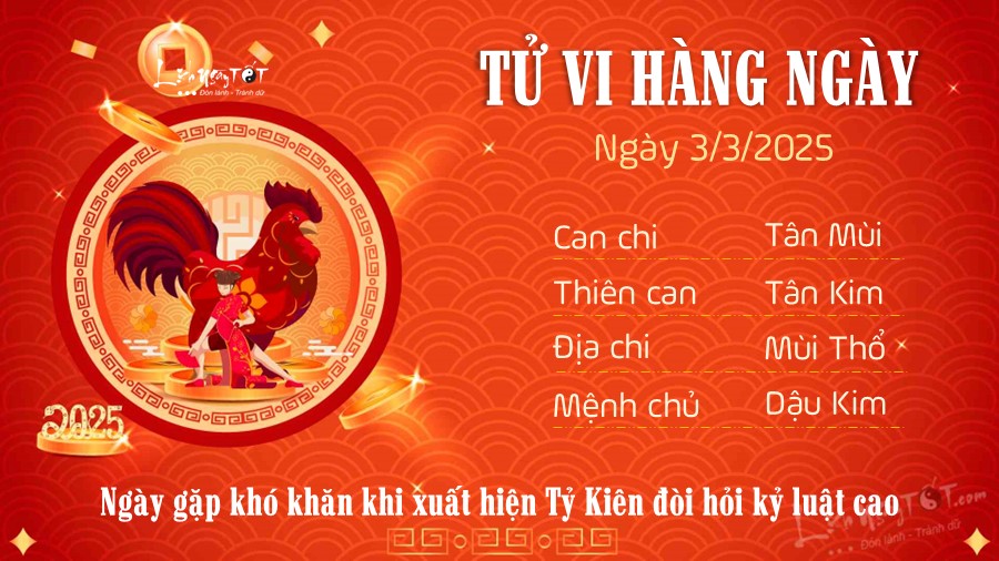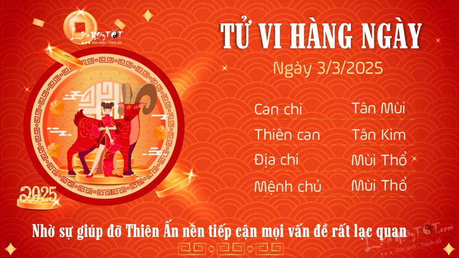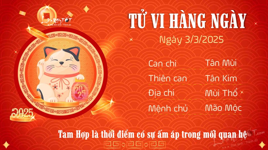 Chi tiết tử vi hàng ngày 3/3/2025 của 12 con giáp