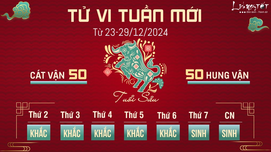 Trong tình yêu, tuần này tuổi Sửu được khuyến khích lùi lại một bước và tiếp thu nhiều hơn. Cho phép người kia thể hiện sự quan tâm và chăm sóc của họ với bạn và đón nhận điều đó để thể hiện tình cảm và sự trân trọng của bạn.